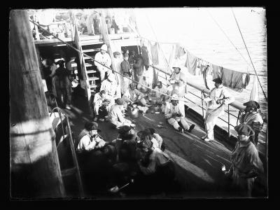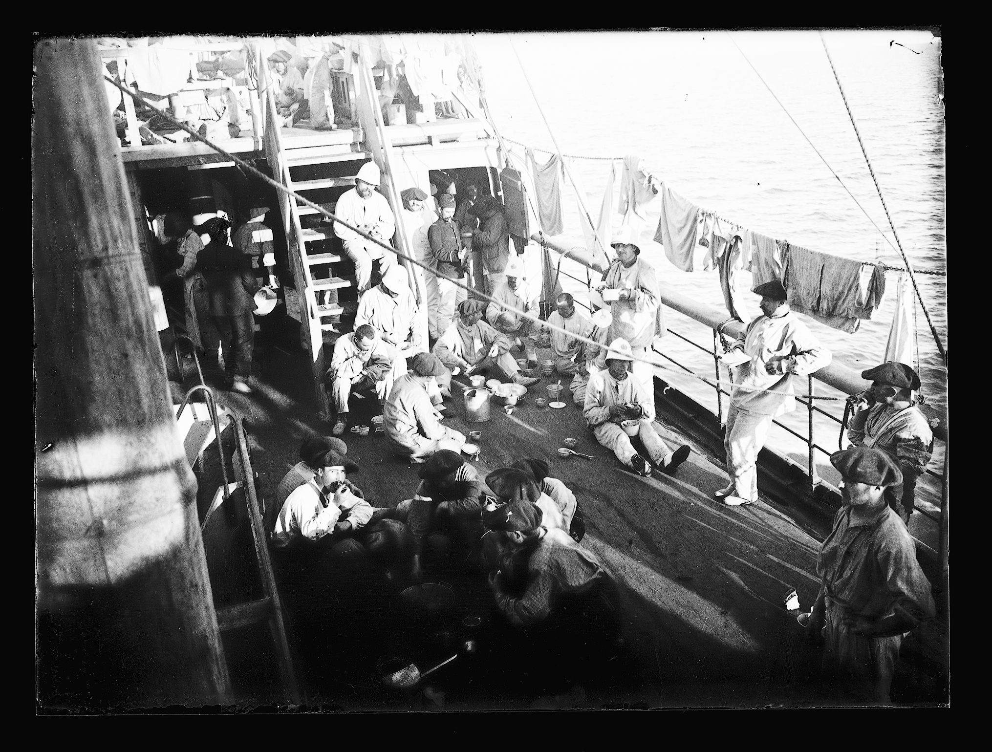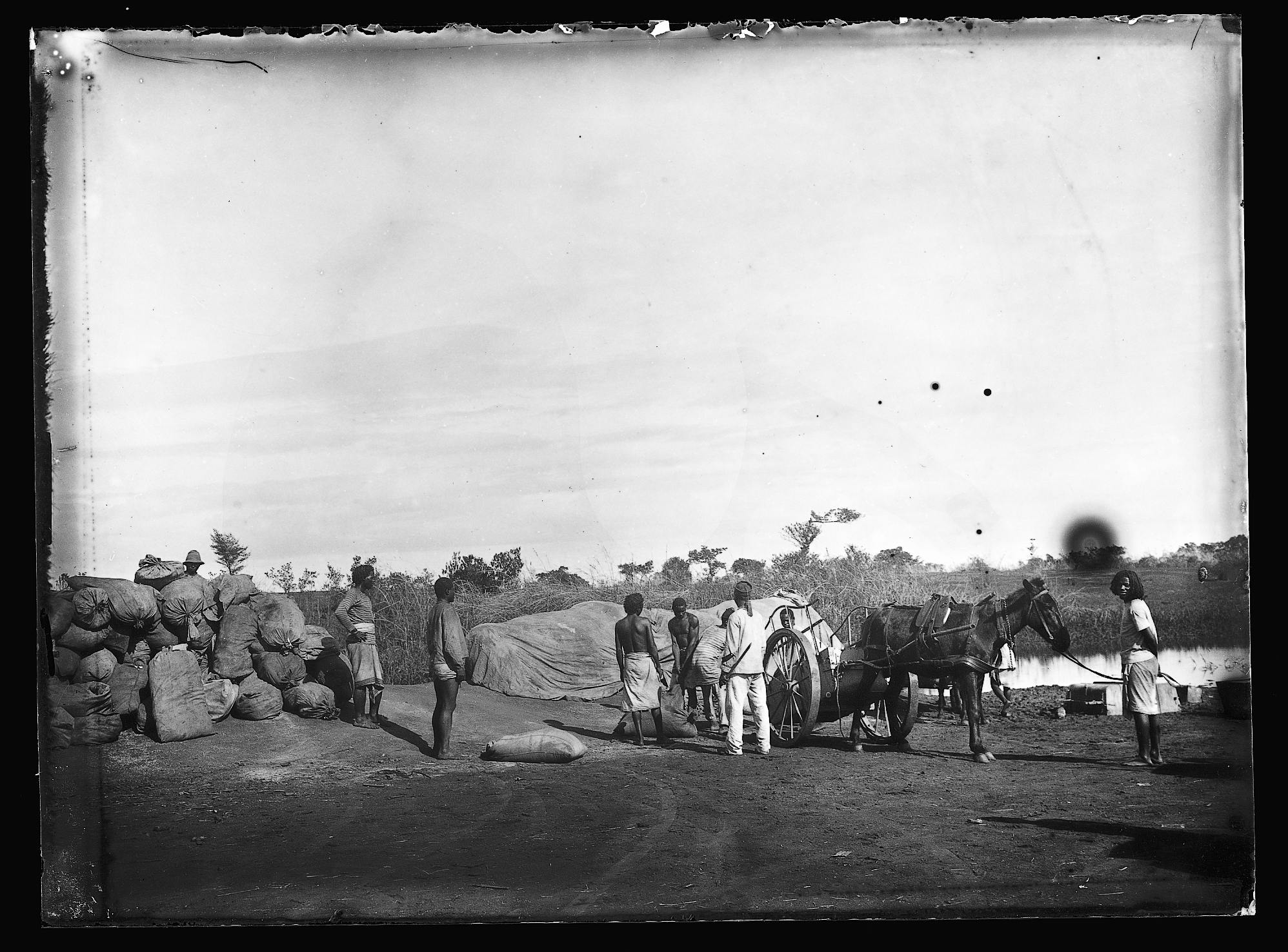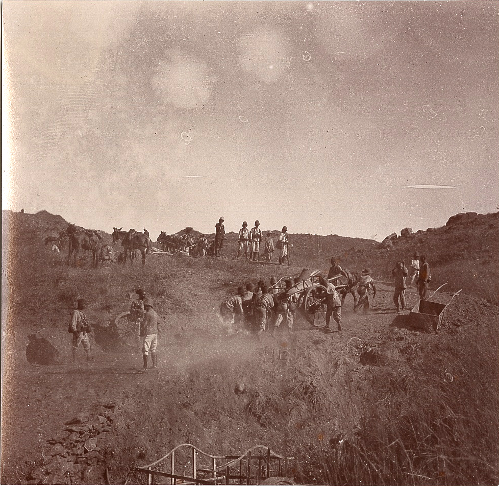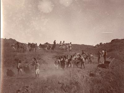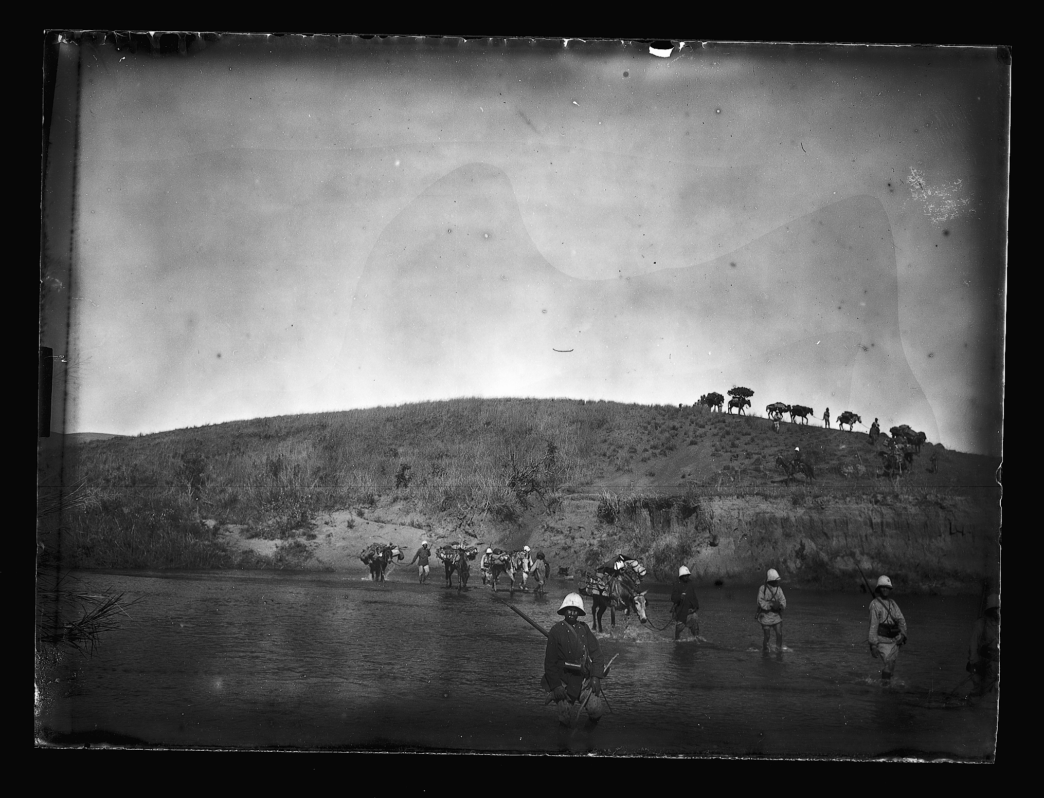 Ce sont bien le déroulement et les difficultés matérielles multiples d’une telle expédition qu’illustrent les photographies prises sur le terrain par le capitaine Peyronel. On y voit le débarquement des bateaux, où s’entassent hommes et animaux, le lent déplacement des colonnes de fantassins avec leurs chariots de matériel et leurs mulets lourdement chargés, les campements de tentes et les popotes. Mais aussi la messe du dimanche suivie par les européens, les populations indigènes des villes et des villages, les marchés et quelques paysages grandioses, captés au fil des déplacements. En revanche, rien ne transparaît du laborieux travail de cartographie des régions traversées, qui s’illustre notamment par la pose de bornes géodésiques.