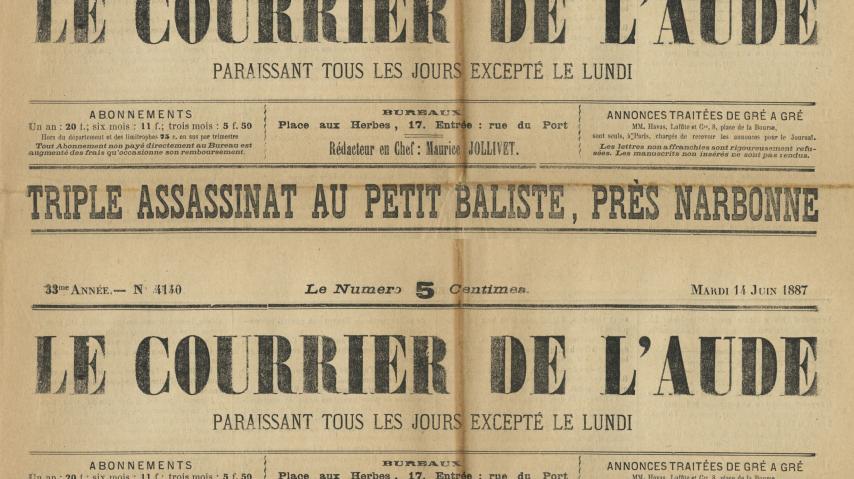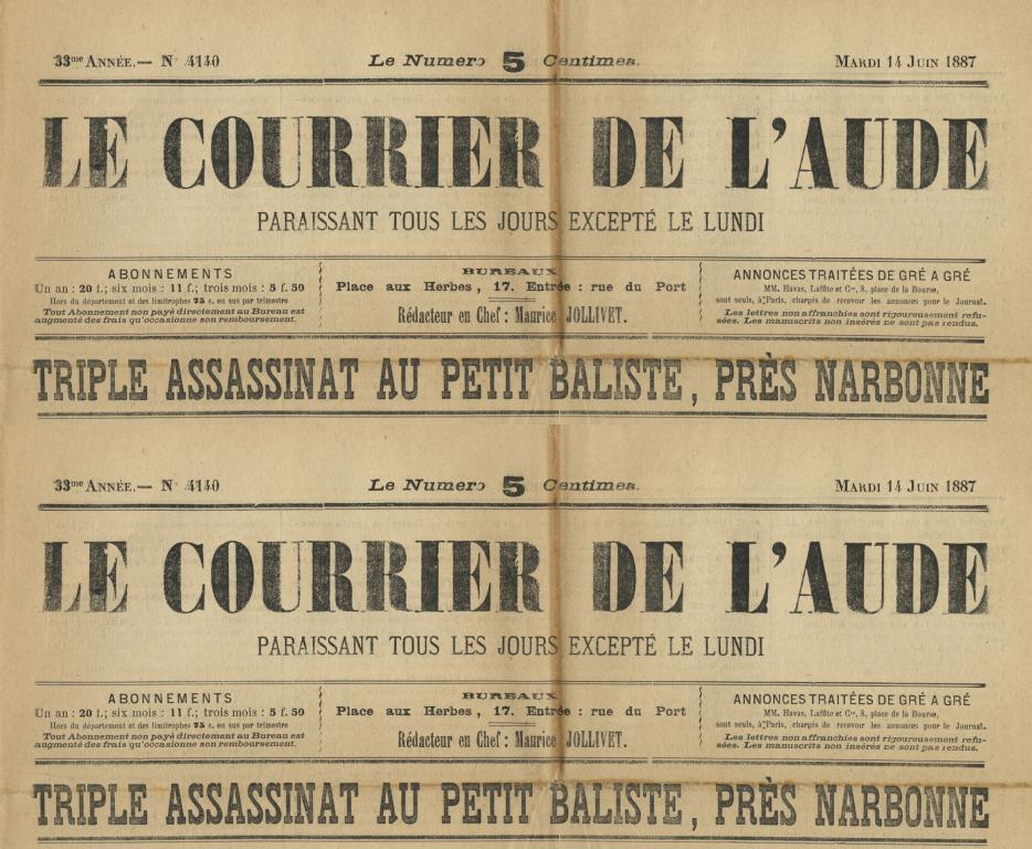 Triple assassinat au Petit-Baliste, Le Courrier de l’Aude du 14 juin 1887