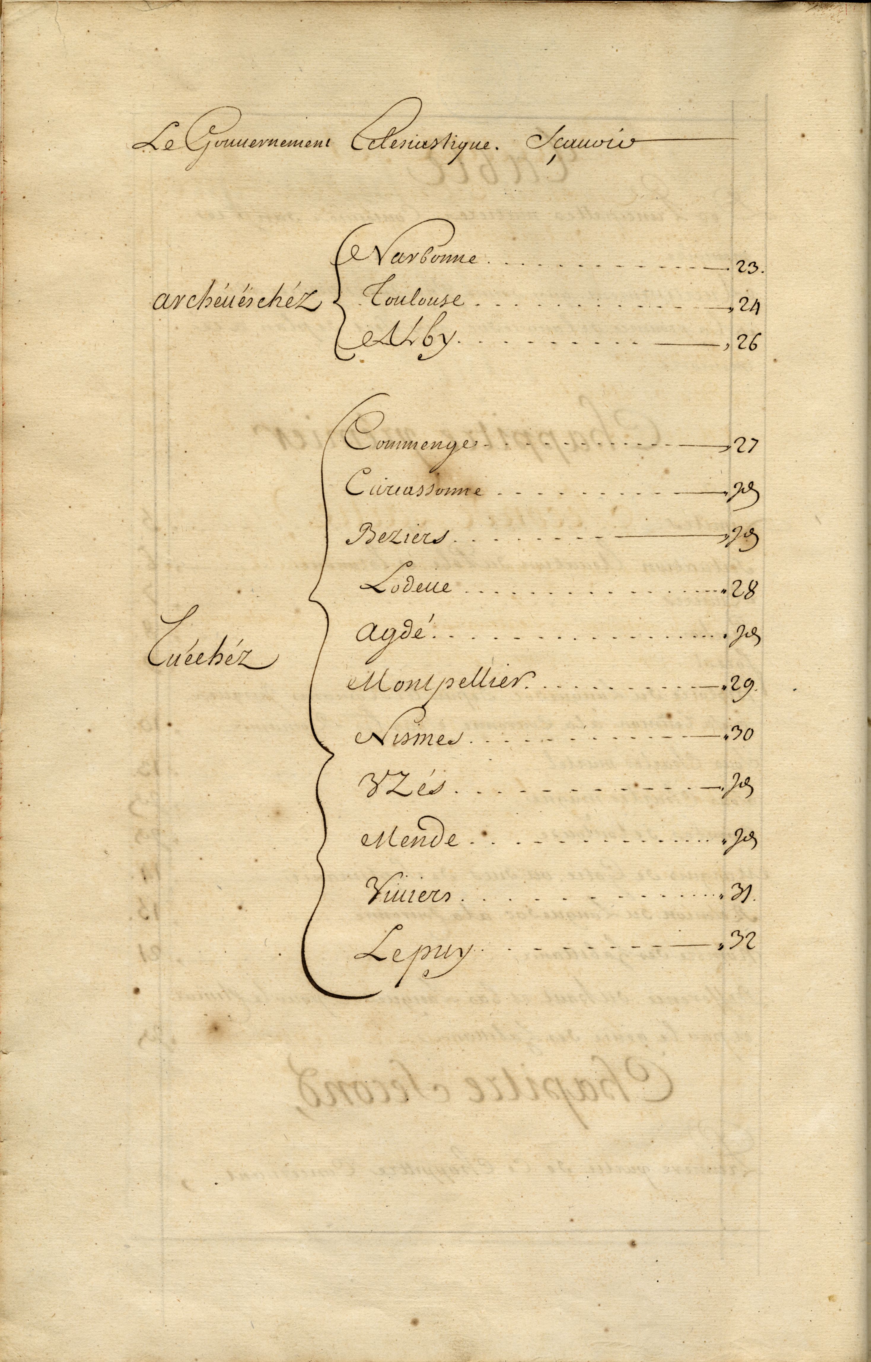 - Le Haut Languedoc où se situe le pays Lauragais, lui-même scindé en bas et haut, et où se trouve le diocèse de Saint-Papoul. Y figurent également les pays du Carcassès et du Razès, avec les diocèses de Carcassonne, de Mirepoix et d’Alet-Limoux.