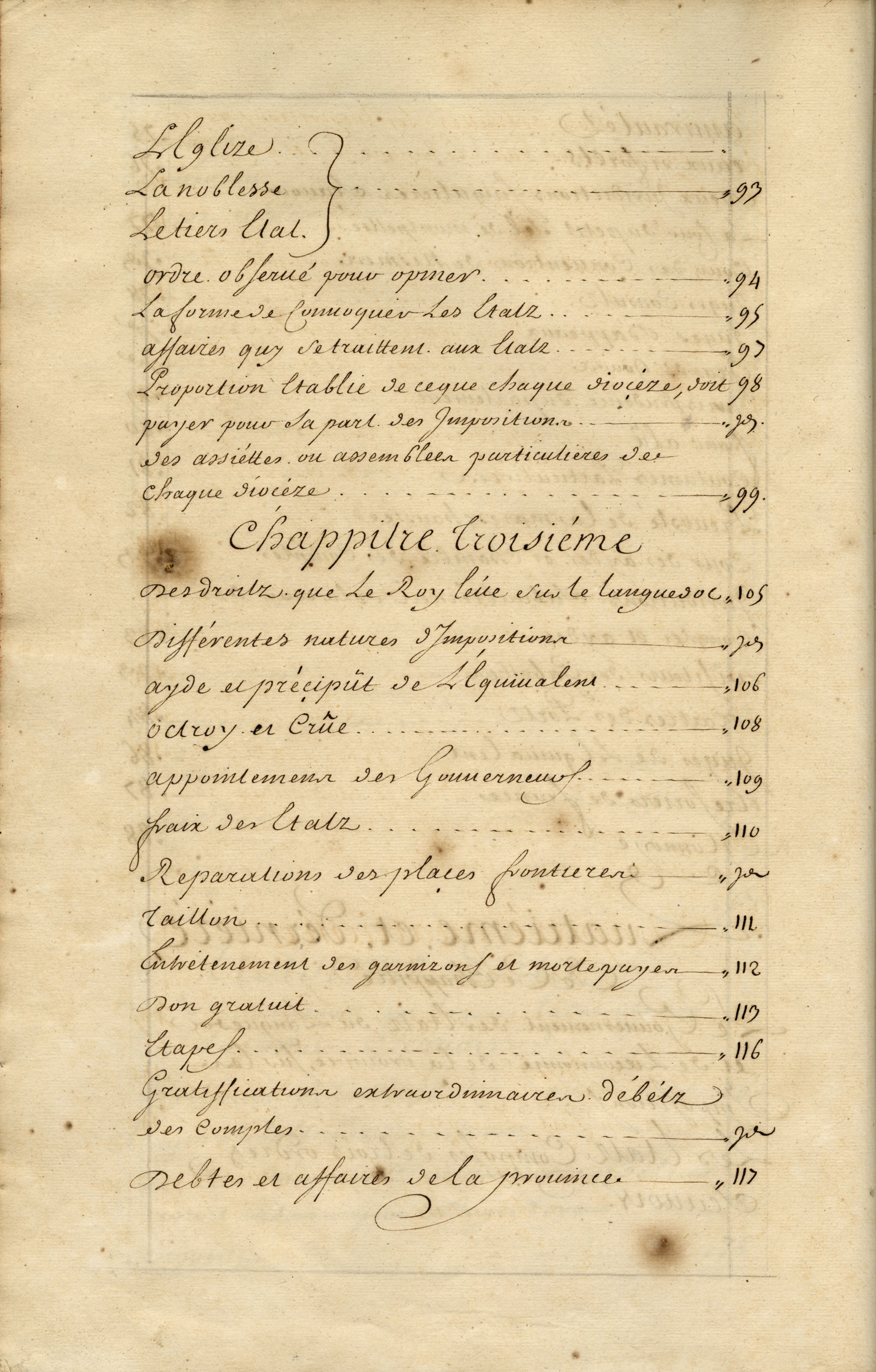- Mémoire historique et politique sur la province du Languedoc... / Nicolas de Lamoignon de Basville. - S. l. : s. n., 1697. - 201 p. (manuscrit). Cote B°19