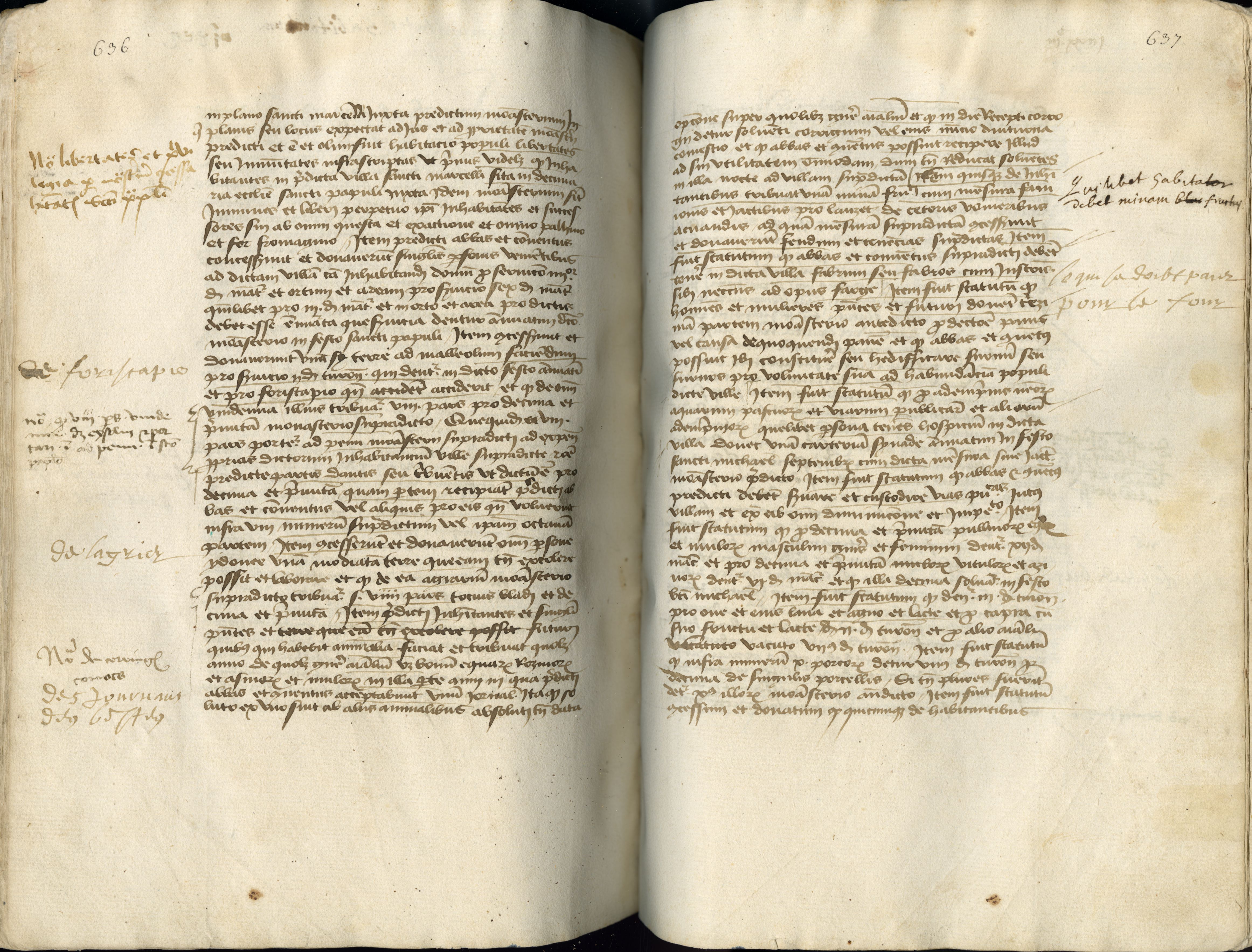 - à l’organisation économique : au XIIIe siècle, il s’agit de concessions de terres, puis aux XIVe et XVe siècles on voit apparaitre des droits d’usage (prendre du bois, faire paître des troupeaux sur des terres vacantes, chasser, pêcher…) et une règlementation des marchés (exemption de certaines taxes, tarifs des péages…)