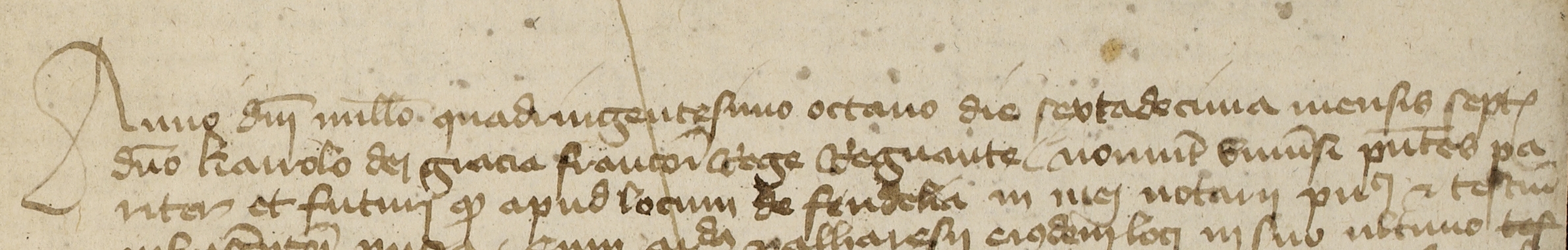 « Anno Domini millesimo quadringentesimo octavo die sextadecima mensis septembris Domino Karolo Dei gracia Francorum rege regnante » - En l'an 1408, le 16 septembre, sous le règne de Charles [VI] roi des Francs.
