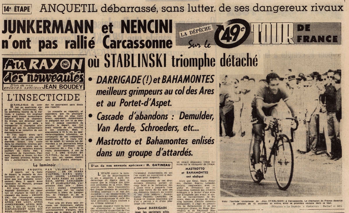 Quatre ans plus tard, le 19 juillet 1951, Carcassonne accueille la 15e étape du Tour de France (Luchon-Carcassonne). Il faudra ensuite attendre onze ans (8 juillet 1962) pour que le Tour de France s’arrête à nouveau dans la préfecture audoise. Au total, de 1947 à 2020, le Tour de France s’est donc arrêté dix fois dans la ville.