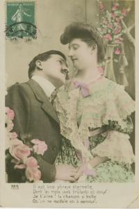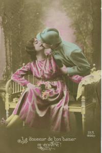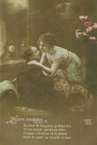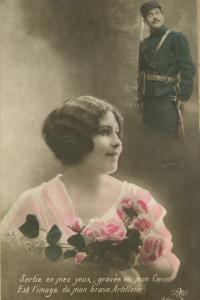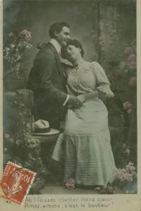 Parmi cette collection, on peut remarquer de nombreuses représentations de l'Amour, notamment au travers de pittoresques scènes de couple. On y voit également beaucoup de duos entre un poilu et sa fiancée. En effet, la Première Guerre mondiale est le premier grand conflit depuis les lois Ferry (1879-1886) qui ont instauré l'école publique gratuite, obligatoire et laïque, en France. Cela a conduit au développement des correspondances entre le front et l'arrière, et des correspondances amoureuses en particulier. En plus du côté amoureux, nombre de ces cartes ont un sous-texte patriotique : les conditions de vie au front et à l'arrière sont très dures et la correspondance permet aux uns et aux autres de tenir.