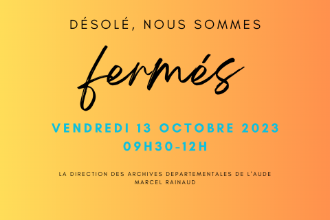 Fermeture exceptionnelle de l'accueil Vendredi 13 octobre 9h30>12h00