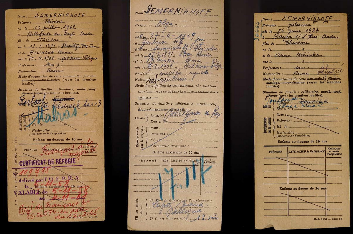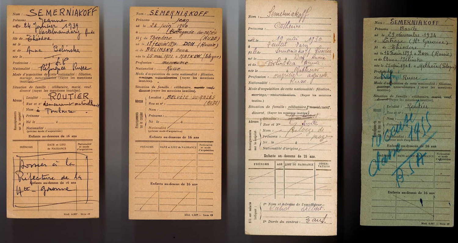 Il en est ainsi de Théodore Semerniakoff, un ancien cosaque blanc originaire de la région du Don, où il naît le 12 février 1891, et de son épouse polonaise Anna Belinska, née à Mathow le 25 mai 1901. Arrivé en France par Constantinople, puis Marseille, il s’engage pour quelques années dans la Légion Etrangère, avant de retourner à la vie civile. Dans les années 1920-1930, il exerce la profession d’ouvrier agricole, se déplace fréquemment de ferme en ferme et réside ainsi dans plusieurs communes différentes des départements du Tarn, de la Haute-Garonne et de l’Aude (Monthaut, Payra-sur-l’Hers, Castelnaudary, Bellegarde-du-Razès). Au cours de ses pérégrinations, le couple donne naissance à dix enfants, dont certains s’installeront définitivement en terre méridionale.