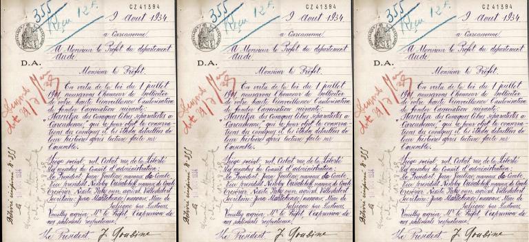 En 1934, ils déposent ainsi auprès de la Préfecture de l’Aude un dossier de création d’une association loi 1901. Cette dernière s’intitule « Stanitza des Cosaques libres séparatistes à Carcassonne » (Une stanitsa était un village faisant partie du territoire d'une des « armées » cosaques, situé sur les territoires actuels de l’Ukraine et de la Russie. Les armées cosaques étaient la plus grande subdivision de la terre des cosaques. Il en existait onze, les plus connues étant celles du Don, de l'Oural et du Terek). Elle est destinée à la « conservation » des Cosaques et à l’étude de leur histoire, mais peut aussi organiser des formes d’entraide et de convivialité entre les adhérents. Elle regroupe une cinquantaine de réfugiés et son siège est installé au restaurant Cubat, rue de la Liberté, dans la ville basse. Farouchement anticommuniste, elle n’accepte bien évidemment aucune personne suspecte de complaisances envers le pouvoir moscovite. Il est d'ailleurs probable que cette association soit bien la « Stanitsa cosaque de l’Ataman Leonid Armennovsko, La colline de Carcassonne », signalée dans les Archives d’Etat russes de Saint-Pétersbourg et qui faisait apparemment l’objet d’une surveillance de la part des autorités soviétiques et françaises.