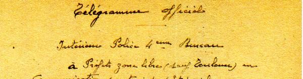 J’ai découvert dans la liasse 5 M 103 (aujourd’hui 107 W 239) la copie d’un télégramme officiel en provenance du ministère de l’Intérieur de Vichy, daté du 22 août 1941, adressé au préfet de l’Aude comme à tous ses collègues de la zone libre, sauf Toulouse.