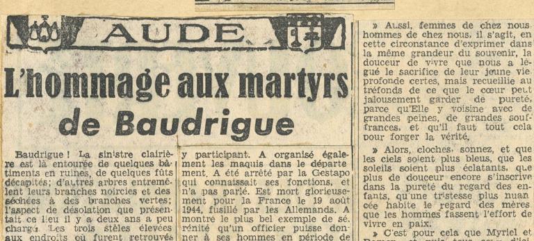 Ecoutez 19 août 1944 : les martyrs de Baudrigues