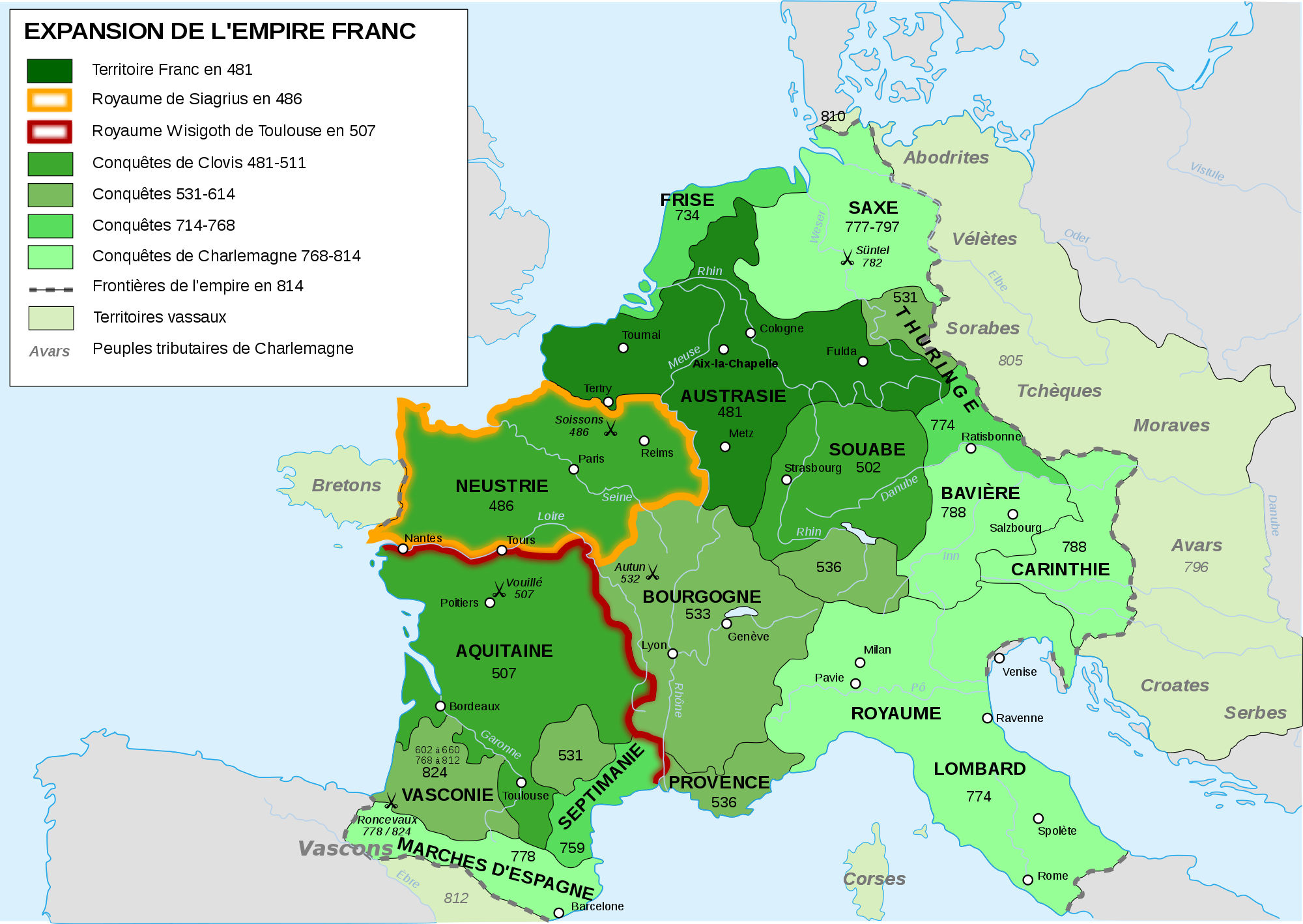 L’histoire de Dame Carcas est une légende. Comme dans toute légende, il existe une part de réalité. Carcassonne a bien été aux mains des Sarrasins entre 725 et 759. Comme tu peux le constater sur la carte, la région de la Septimanie a été totalement sous contrôle en 759. Elle a été conquise par le père de Charlemagne, Pépin Le Bref, et non pas par Charlemagne lui-même (qui avait à ce moment-là seulement 17 ans).