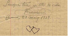 Nous vous proposons de vous plonger dans la correspondance échangée entre deux refugiés espagnols internés à Bram et leur famille. Disponibles en français ou dans leur langue d'origine (castillan ou catalan), ces correspondances témoignent certes des difficultés de la vie quotidienne dans le camp de Bram ou dans les camps de travail, notamment la solitude et la privation de liberté, mais aussi de leur désir de pouvoir se retrouver rapidement.